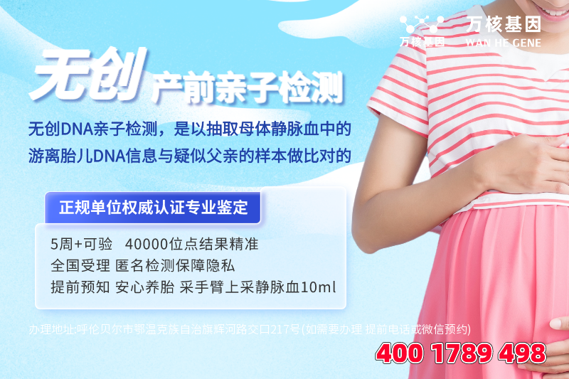 可在线咨询:无创产前亲子鉴定、司法亲子鉴定、移民亲子鉴定、入户亲子鉴定、中考报告亲子鉴定、高考亲子鉴定、个人隐私亲子鉴定等等咨询服务,鄂温克亲子鉴定基因检测,联合了多家权威法医物证司法鉴定及基因检测公司的亲子鉴定服务咨询机构,采用先进的DNA检测技术,确保鉴定结果的准确性和可靠性。